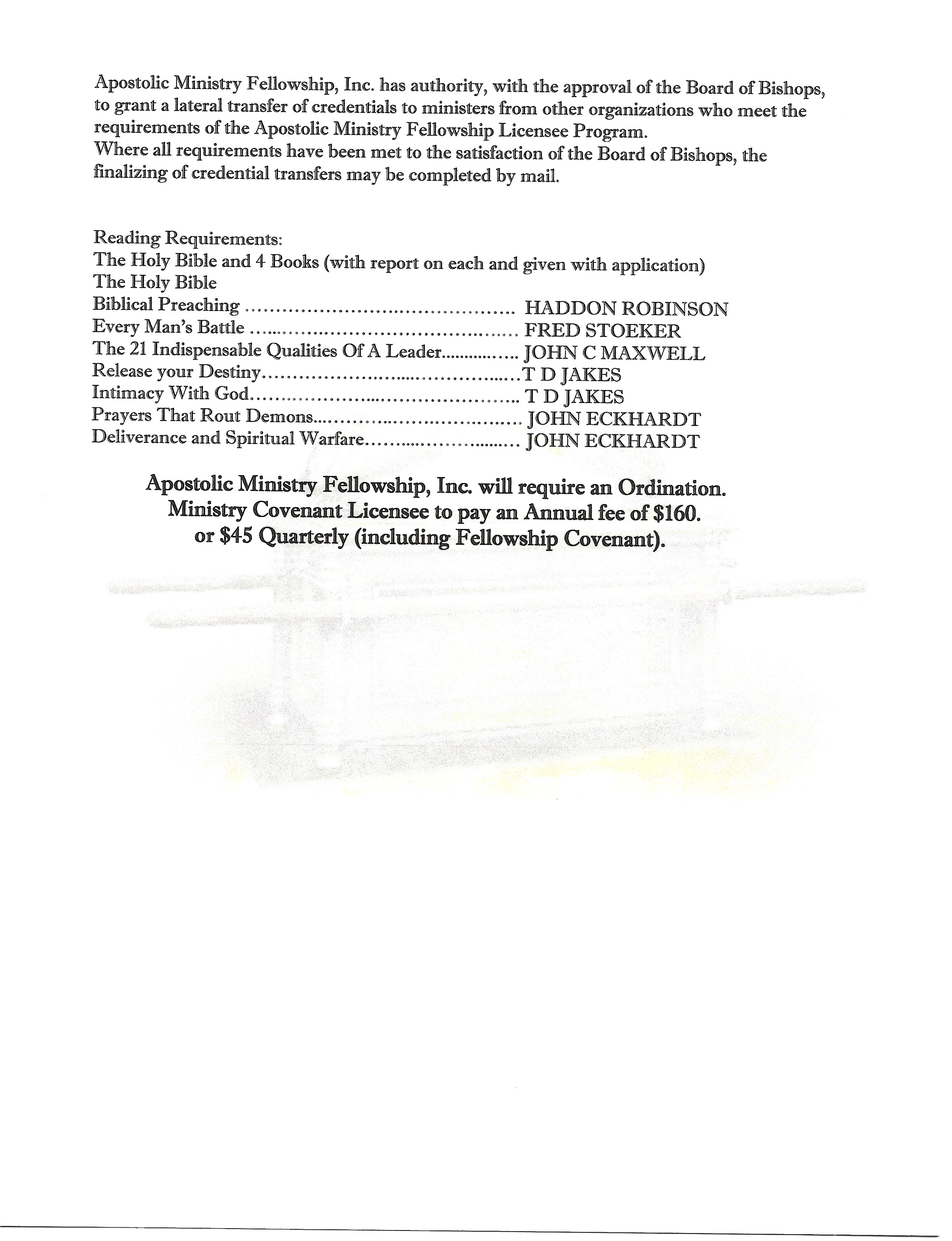 Those desiring to be in Ministry Credential Covenant License with Apostolic Ministry Fellowship, Inc. Take A Look…..